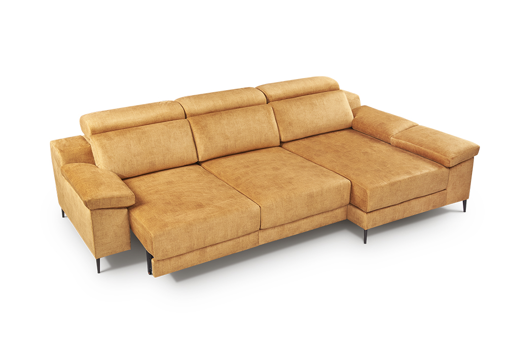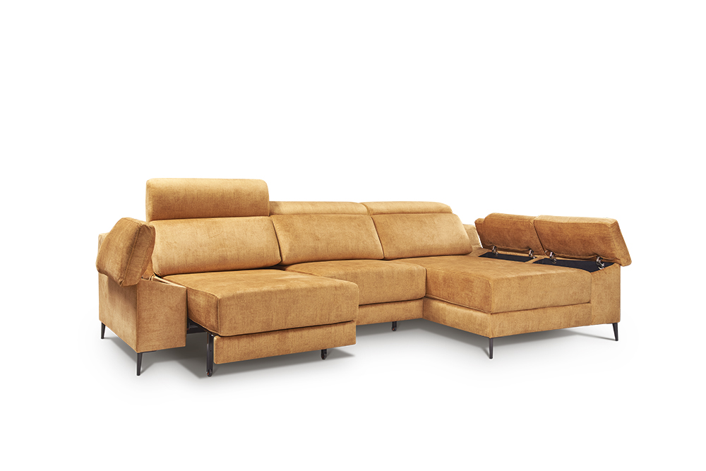 Su amplia chaise longue no solo es ideal para relajarte, sino que también incluye prácticos compartimentos de almacenamiento, perfectos para mantener el orden en tu salón. Su diseño contemporáneo y tapicería de alta calidad aportan un toque cálido y sofisticado a cualquier espacio.