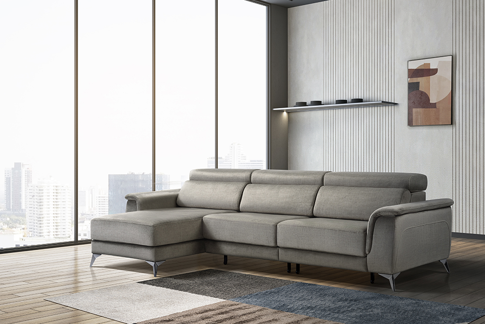 Magnus destaca por su diseño robusto y elegante, perfecto para quienes buscan un sofá con personalidad. Su tapizado en tonos grises y líneas contemporáneas aportan un toque moderno a tu salón, mientras que la chaise longue asegura el máximo confort. Magnus combina estilo, comodidad y funcionalidad en una sola pieza.