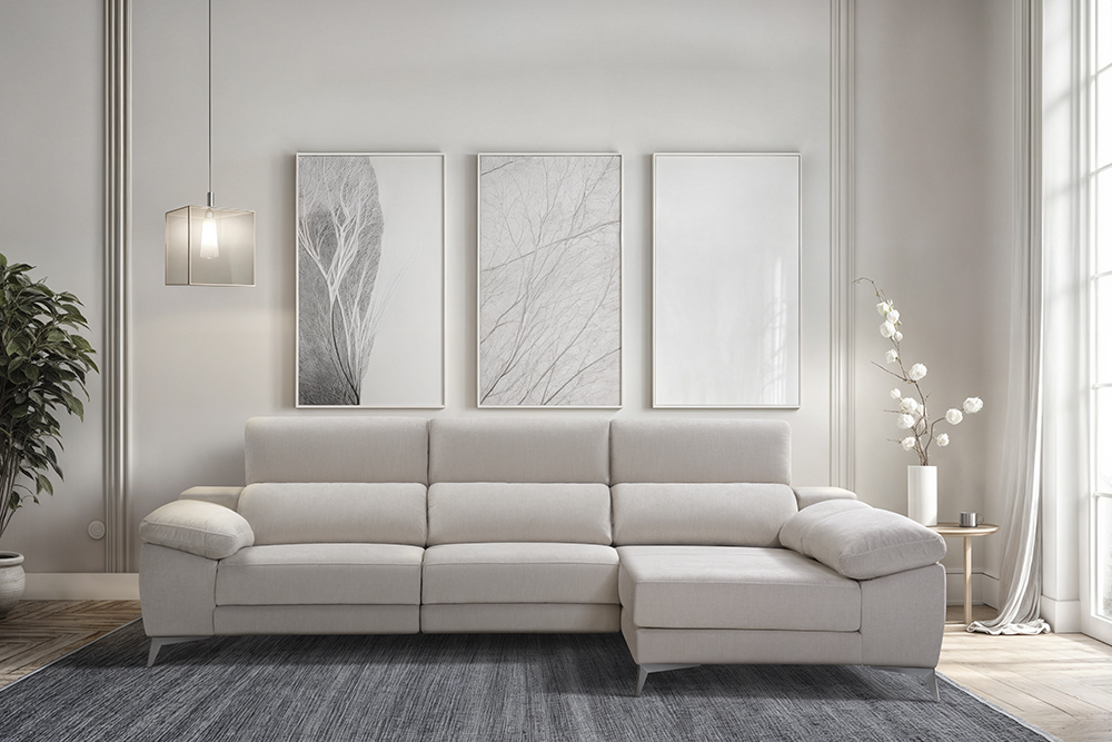 Crea tu espacio ideal con Oasis, un sofá diseñado para brindar confort y elegancia. Su tapizado en tonos neutros y líneas contemporáneas se adaptan a cualquier estilo, mientras que su chaise longue te invita a disfrutar de momentos únicos de descanso. Oasis transforma tu salón en un refugio de paz y modernidad.