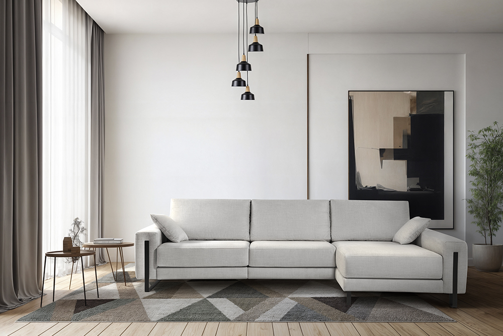 Con una estructura robusta y patas de diseño contemporáneo, Leya se adapta perfectamente a espacios sofisticados y luminosos. Su tapizado suave y los cojines cuidadosamente elaborados ofrecen una experiencia de descanso única, ideal para relajarte después de un día agitado.